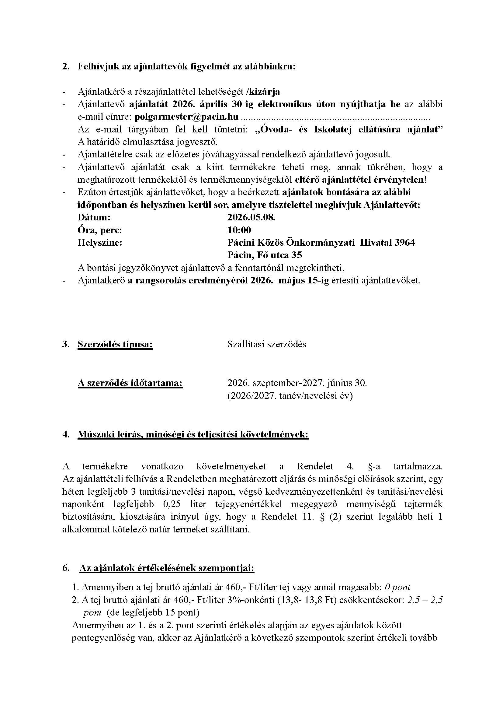 Óvoda- és Iskolatej ellátására ajánlattételi kiírás 2026/2027