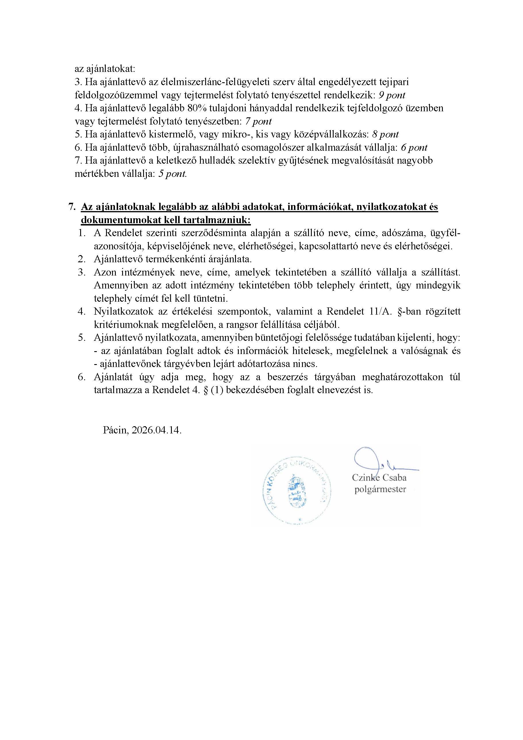 Óvoda- és Iskolatej ellátására ajánlattételi kiírás 2026/2027